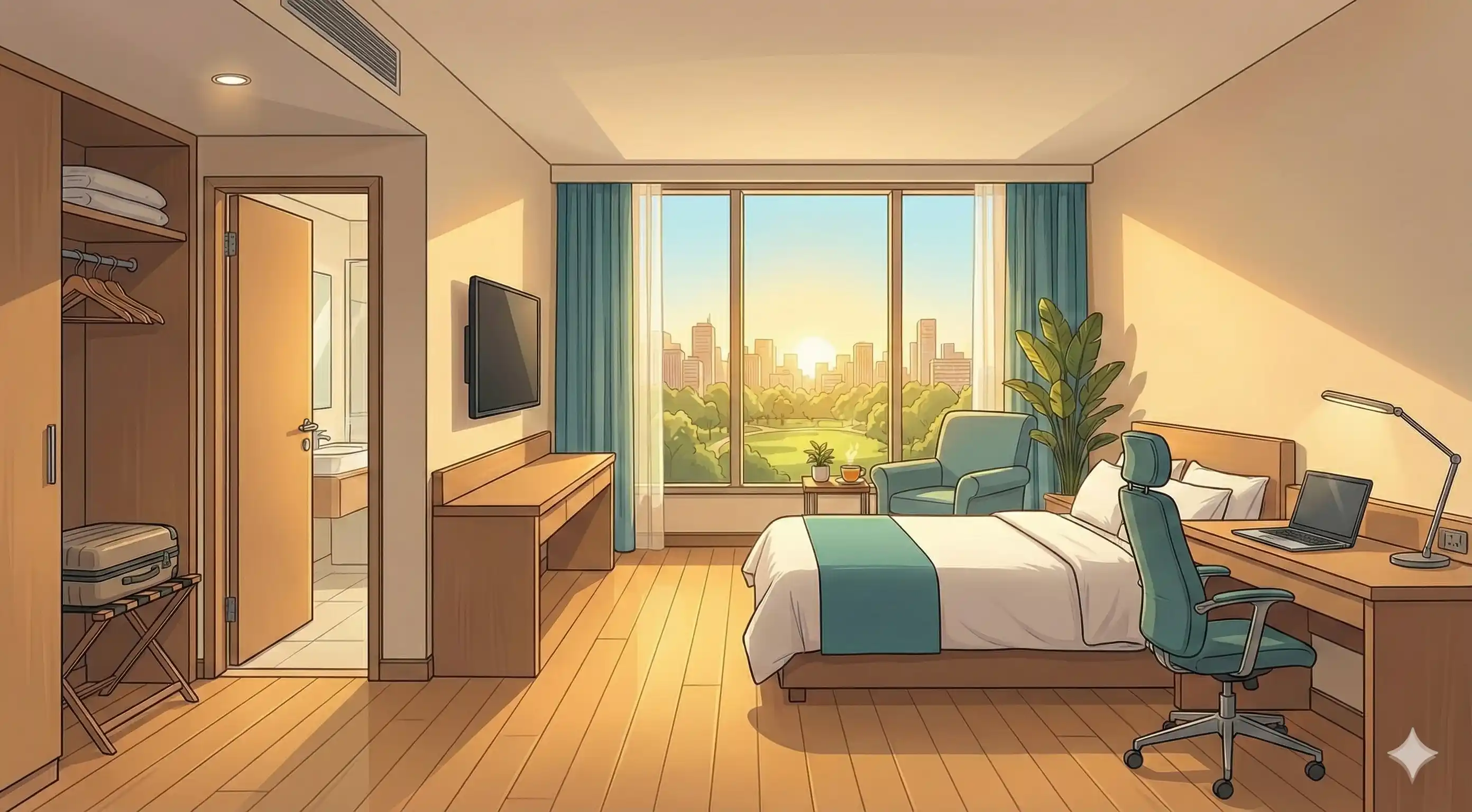 In many urban hotels, guest rooms can be as small as 15–18 m², making layout optimization absolutely essential for guest comfort and operational success. The goal is to make these compact spaces feel spacious and functional despite their size.