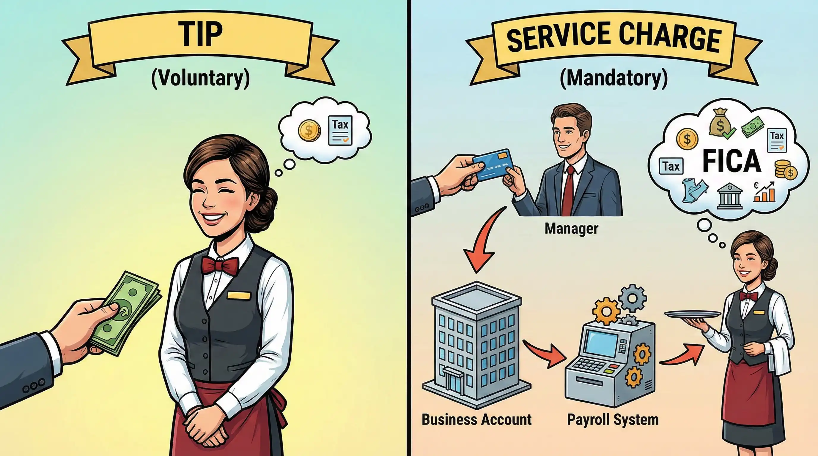 This difference has a big impact on how staff are paid. Service charges make it easier to estimate income, but they also mean more work for payroll. Tips, on the other hand, give immediate rewards for good service but make income less stable.