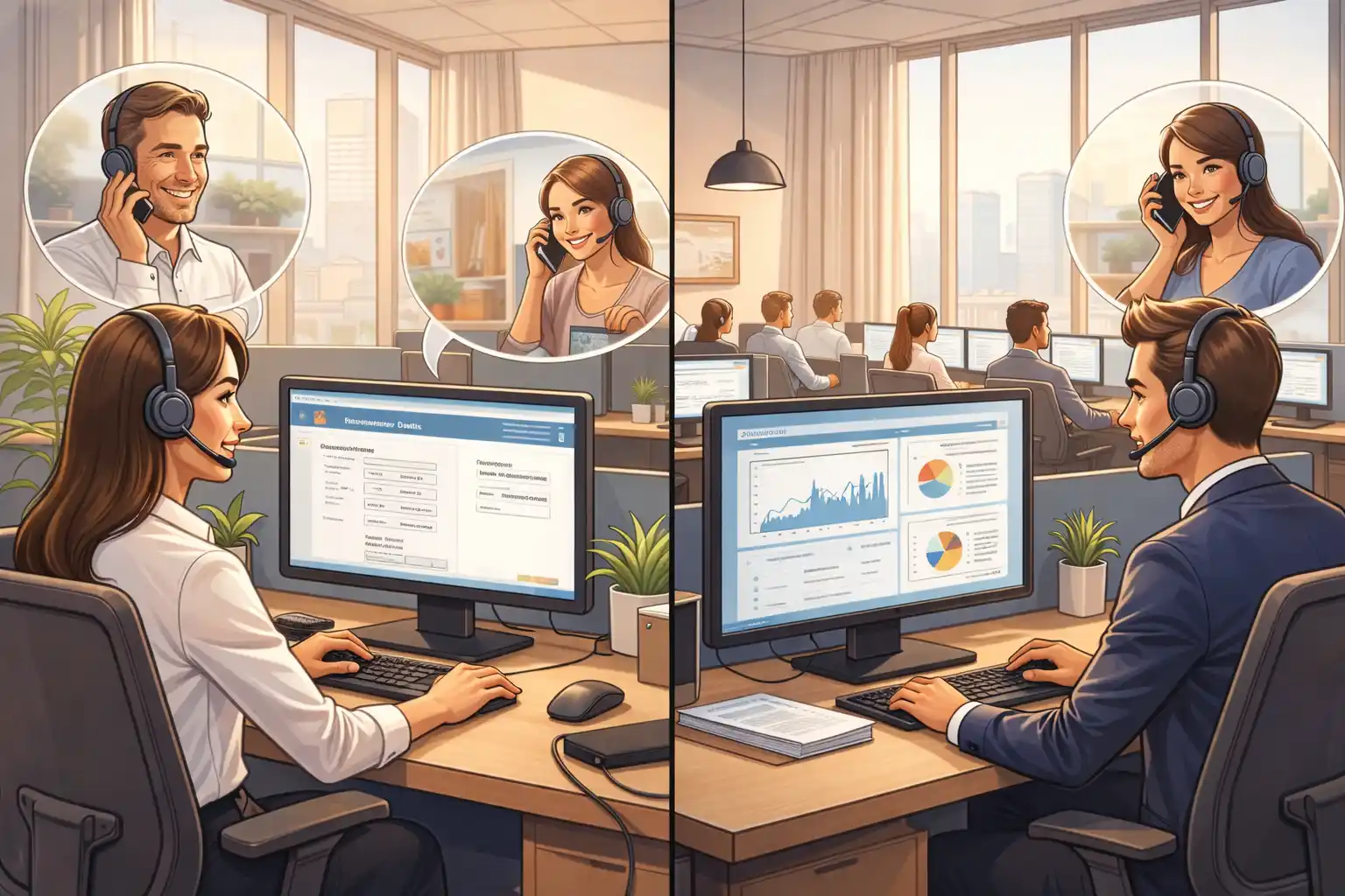 - Herramientas de coaching asistidas por IA y soporte en tiempo real para los agentes.