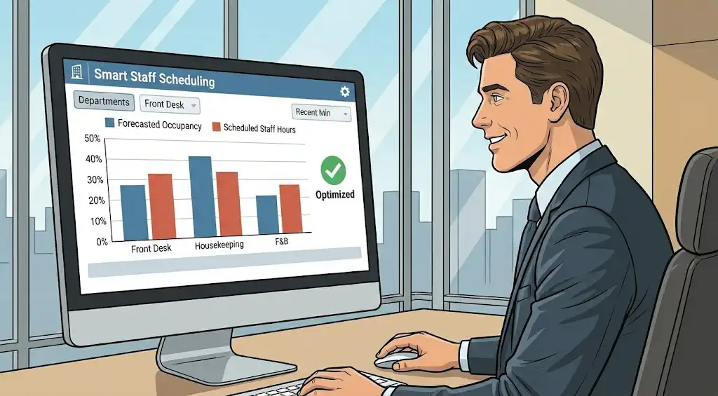 | Personal de recepción | Horarios fijos independientemente de la ocupación | Crear planes de trabajo basados en previsiones reales de ocupación |