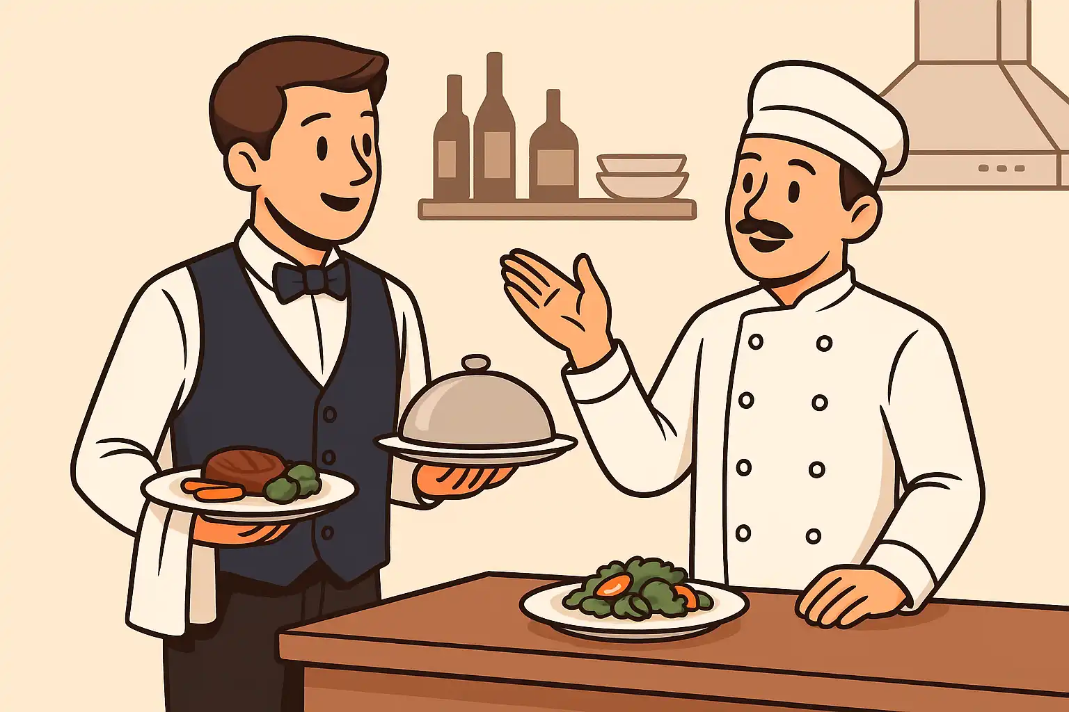 El buen funcionamiento del servicio de alimentos y bebidas depende de la claridad de las funciones y del trabajo en equipo entre el personal de sala (FOH) y el personal de cocina (BOH).