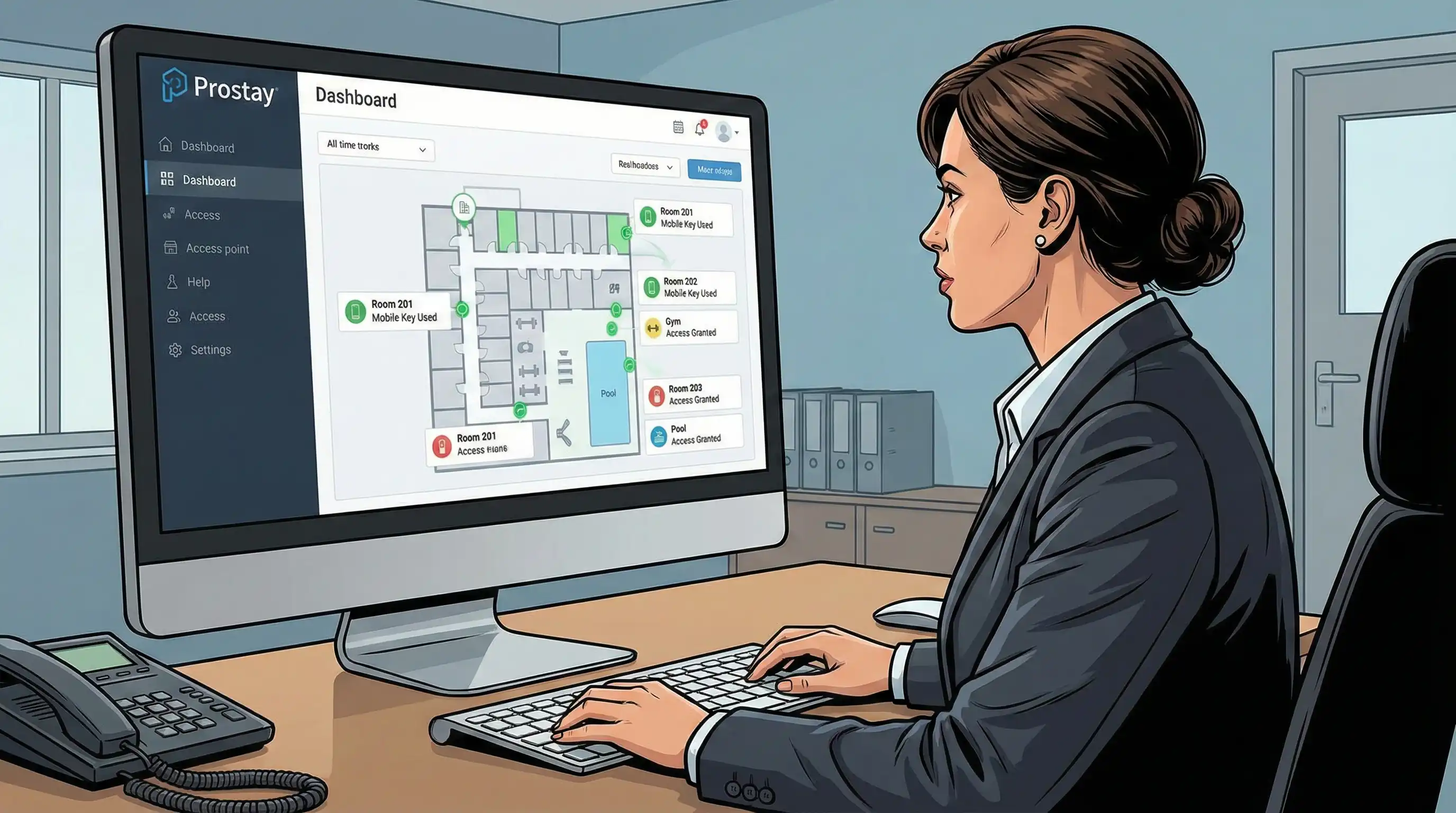 Esta guía trata sobre los sistemas de acceso con tarjeta magnética específicos para hoteles, como los distintos tipos de sistemas, cómo pueden funcionar con sistemas de gestión de propiedades como Prostay, las ventajas de seguridad que ofrecen y los aspectos que hay que tener en cuenta al instalarlos. El artículo solo trata sobre aplicaciones para el sector hotelero y no incluye aplicaciones de seguridad para propiedades residenciales o comerciales en general. Los propietarios de hoteles, los gestores inmobiliarios, los especialistas en TI del sector hotelero y los responsables de la toma de decisiones que estén buscando soluciones modernas de control de acceso encontrarán consejos útiles sobre cómo elegir y configurar un sistema.