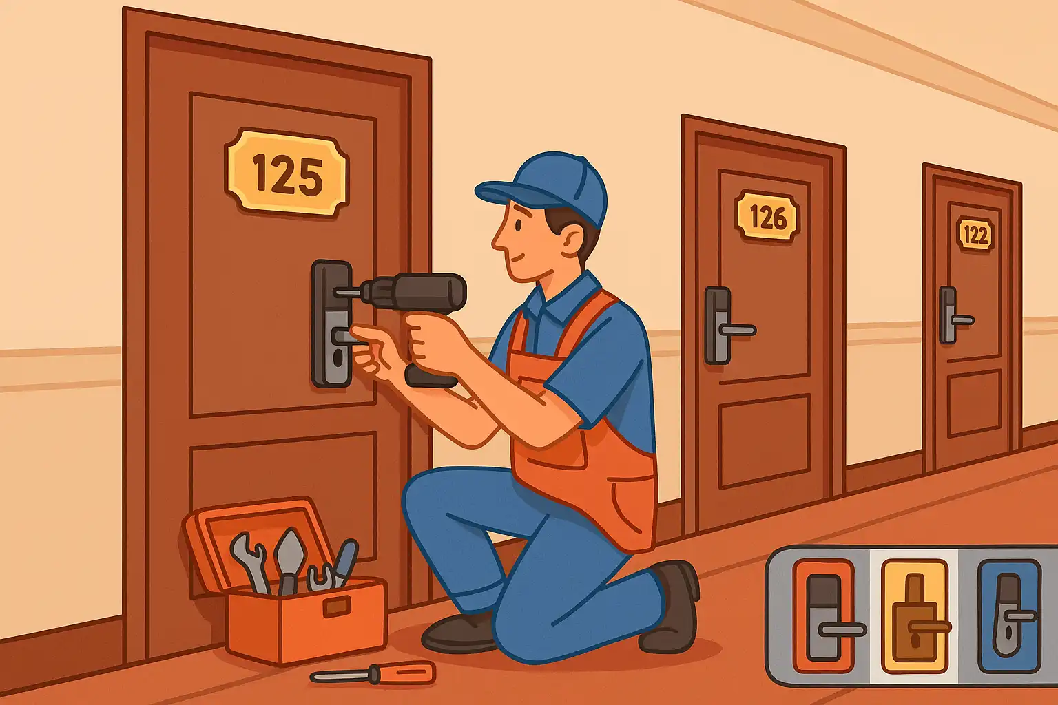 La instalación de un sistema de cerraduras para puertas de hotel requiere planificación, instalación profesional y formación del personal para que todo funcione correctamente.