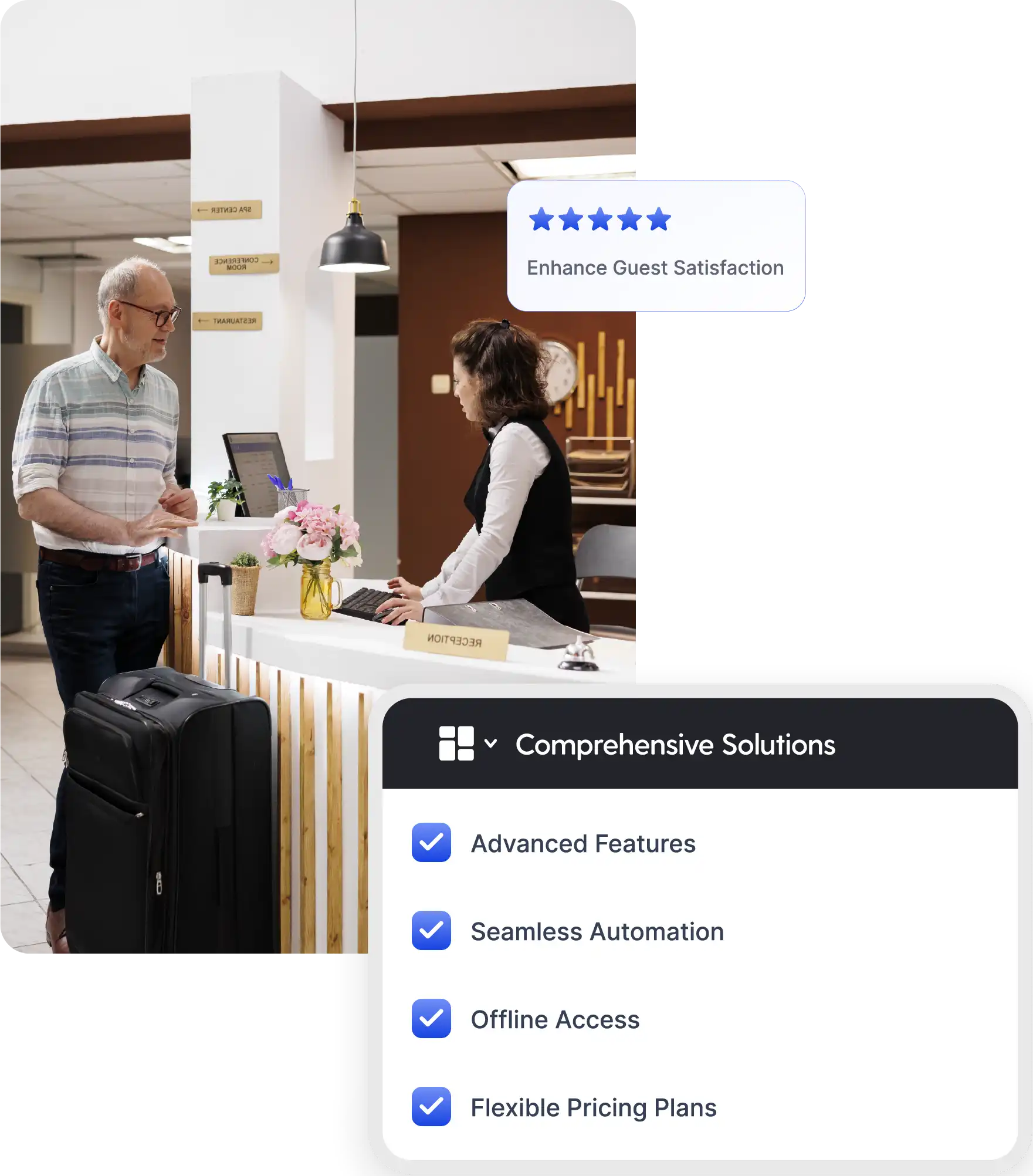 Tanto si administra 10 o 200 habitaciones, los precios de Prostay se ajustan al tamaño y complejidad de su propiedad. Haga crecer su negocio con tranquilidad, sin sobresaltos en los costes.