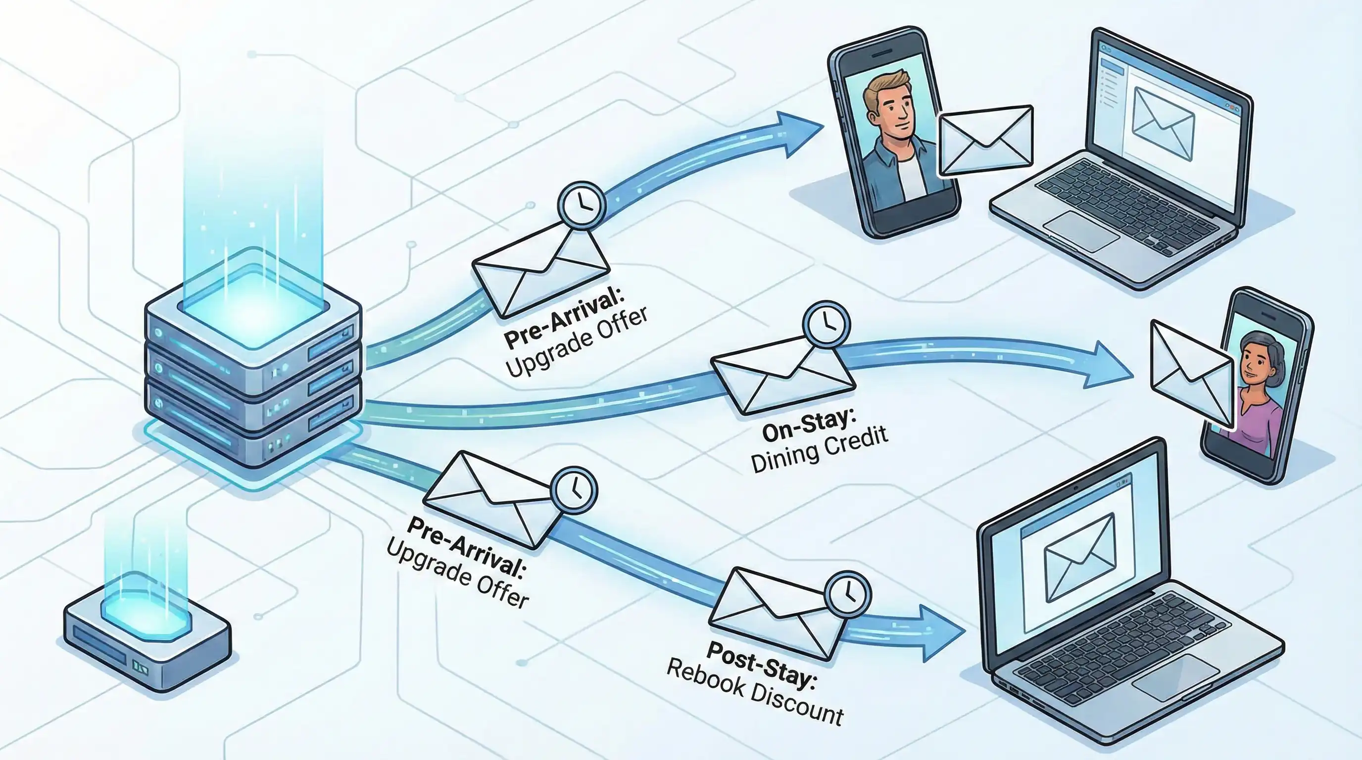 Il collegamento ai dati CRM è molto importante poiché le piattaforme di email marketing utilizzano le preferenze e la cronologia dei visitatori per rendere le righe dell'oggetto, le offerte e i contenuti più pertinenti per ciascun utente. Le strutture che utilizzano l'automazione dell'email marketing possono ridurre i tempi di risposta fino all'85%, mantenendo comunque quel tocco personale che spinge gli ospiti a prenotare direttamente.